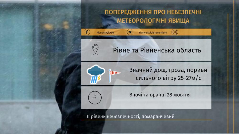 Рівненський обласний центр з гідрометеорології попереджує про стихійні та небезпечні метеорологічні явища в області та обласному центрі.