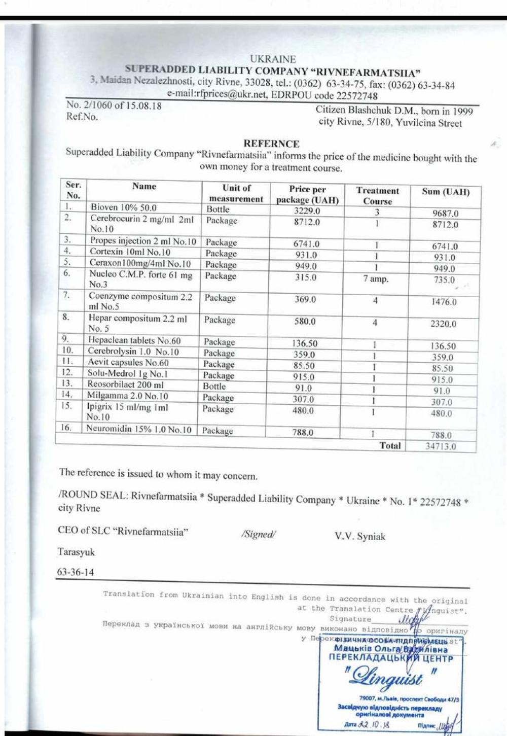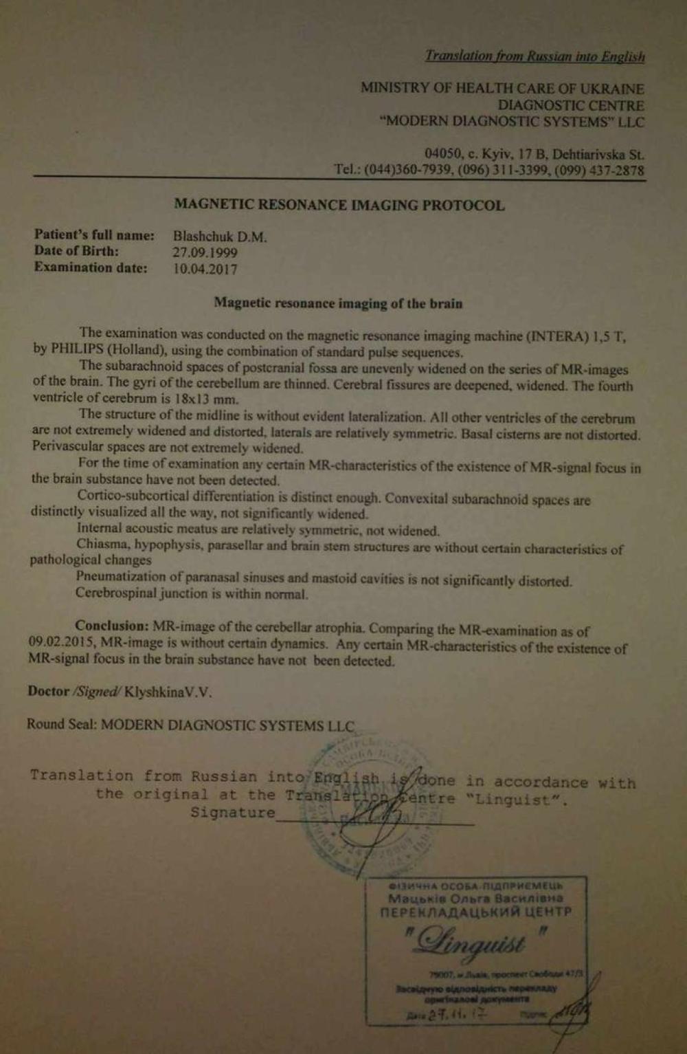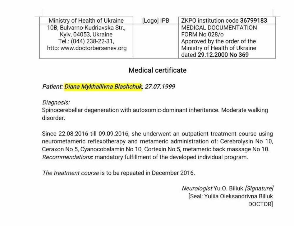 "Нашу донечку ми лікуємо мекаментозно. Доводиться купувавати дороговартісні ліки для зупинення прогресування атрофії клітин мозку, атрофії м'язів та для проходження реабілітації. Нам не вистачає ще 1500 долларів. Діанка зараз ходить по квартирі підримуючись за стіни", - розповідає Оксана Блащук.