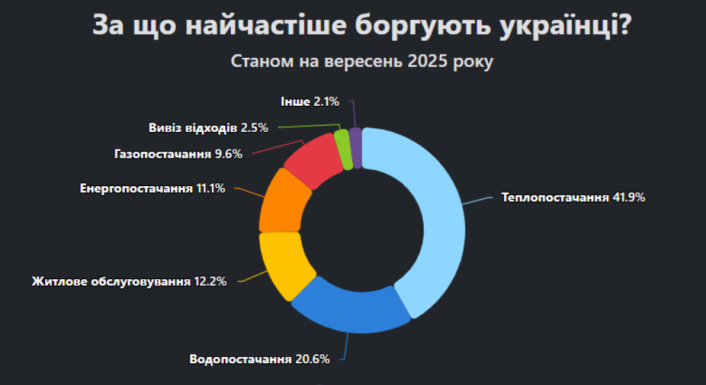 З даними Єдиного реєстру боржників, загалом станом на середину вересня 2025 року в Україні налічуються рекордні 788 тисяч боргів за комуналку. Загалом боргів побільшало у 1,5 раза від початку повномасштабної. Найчастіше українці боргують за тепло та воду.