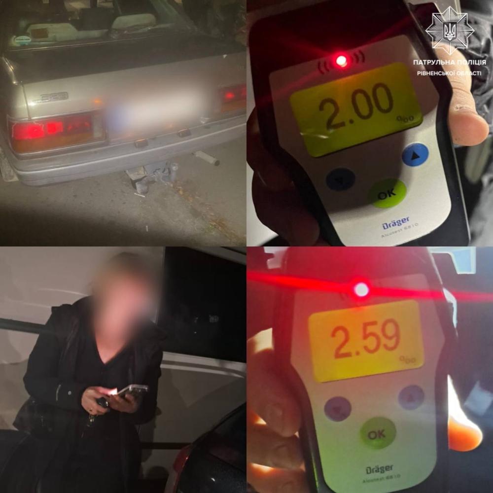 У 39-річної жінки, яка була за кермом, інспектори виявили ознаки алкогольного спʼяніння. Результат огляду — 2,59‰.