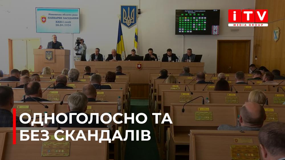 Одноголосно та без скандалів. Сьогодні у Рівному відбулася 22-а сесія обласної ради. На засіданні обранці розглянули 45 питань. Серед них - чимало кадрових. Також на сесії приймали рішення щодо лікарень області, розглянули заяву одного з депутатів про складання його повноважень та вирішили розробляти програму для закупівлі зброї для ЗСУ.