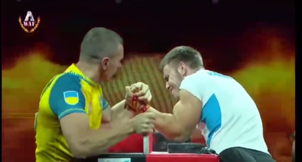 Жох став чемпіоном світу серед дорослих (ліва рука), тріумфувавши над спортсменом із Казахстану.