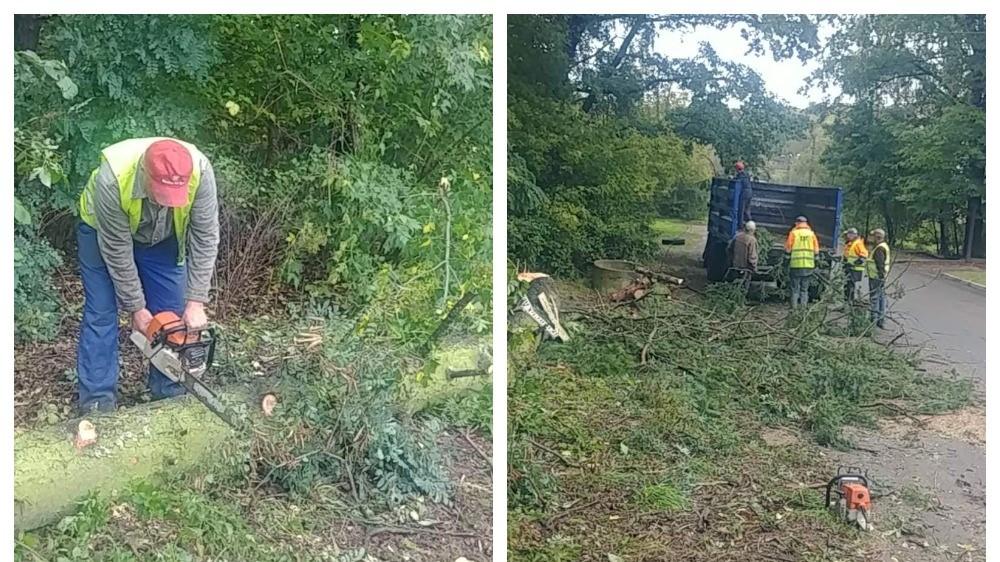 Також працівники Тресту зрізали та прибрали сухе гілля ще на вулицях Калнишевського, 22а та Древлянська, 24а.