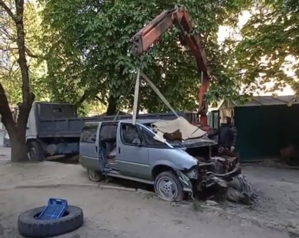 Учора, 10 травня, у мешанців будинку, що знаходиться на вул. Захисників Маріуполя, 1, відбулося справжнє свято: у їхньому дворі прибрали згорілий автомобіль, який стов там протягом декількох років.