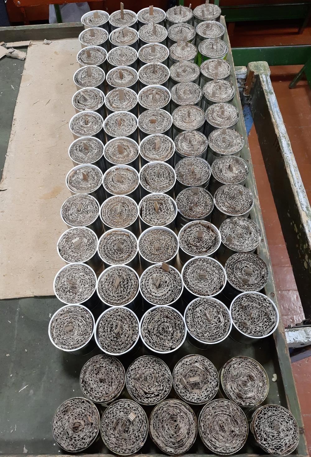 «Окопні» свічки роблять у металевій тарі з-під консерв. Тришаровий гофрований картон ріжуть на смужки, скручують та вкладають у бляшанки. Парафін та віск переплавляють, після чого заливають у вже підготовлені місткості з картоном.
