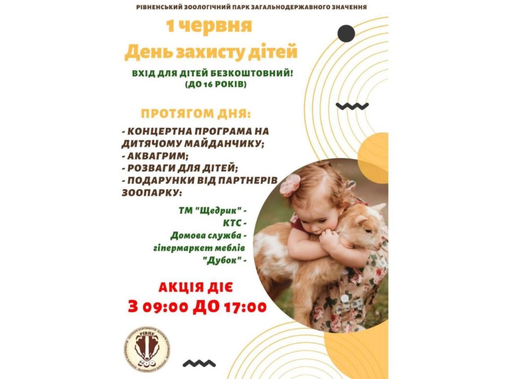 У Рівненському зоопарку, з нагоди Дня захисту дітей, 1 червня проведуть свято. Вхід до зоопарку для дітей буде безкоштовним.