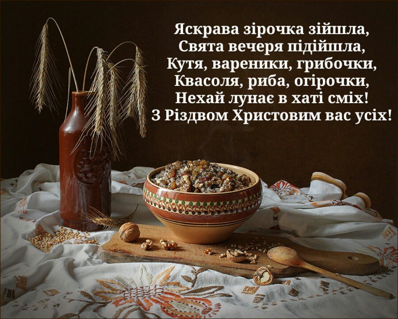 У цей святковий вечір хочу побажати вам тепла родинного вогнища, смачної куті та веселих колядок. Нехай Різдвяний Святвечір подарує вам незабутні миті щастя та єднання з близькими.