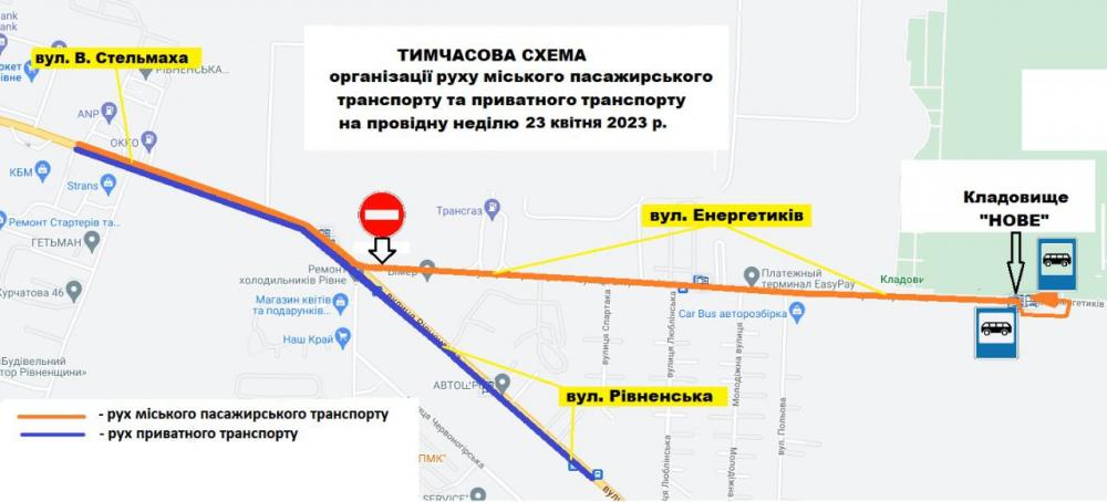 Для зручності рівнян, щоб потрапити до кладовища, організовували додаткову кількість одиниць техніки. Маршрутки, які матимуть таблички з написами "Кладовище Нове", будуть традиційно курсувати за своїм маршрутом, кінцевою точкою буде кладовище.
