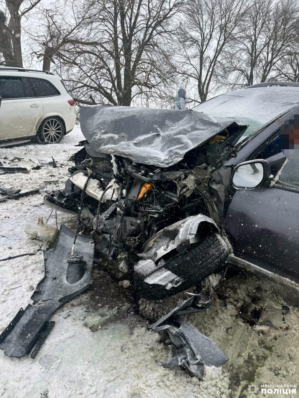 На місці події слідчо-оперативна група попередньо встановила, що 66-річний водій автомобіля «Mitsubishi Outlander», житель Дніпропетровщини на заокругленій ділянці дороги допустив виїзд на зустрічну смугу, де відбулося зіткнення із автомобілем «Mercedes» під керуванням 40-річної киянки.