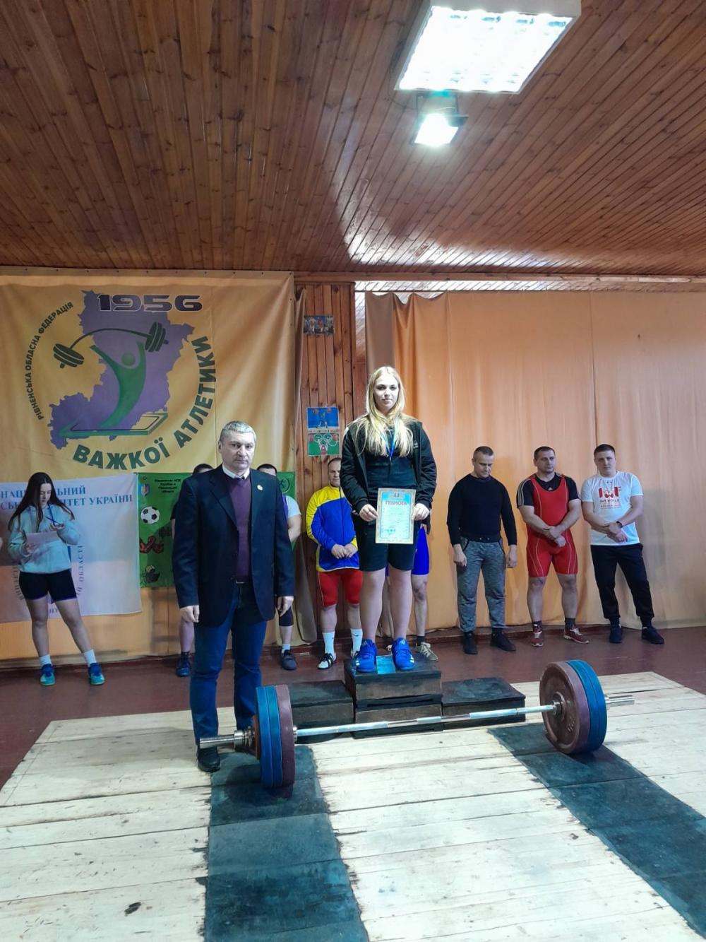 Вихованка Костопільської ДЮСШ Софія Карпінська у 14 років не лише стала чемпіонкою області, але й виконала норматив "1-ий дорослий розряд" (65 кг в ривку, 80 кг в поштовху).