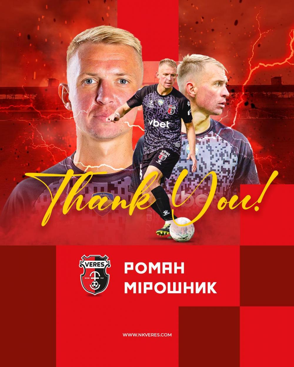 Про це повідомили у ФК "Верес".