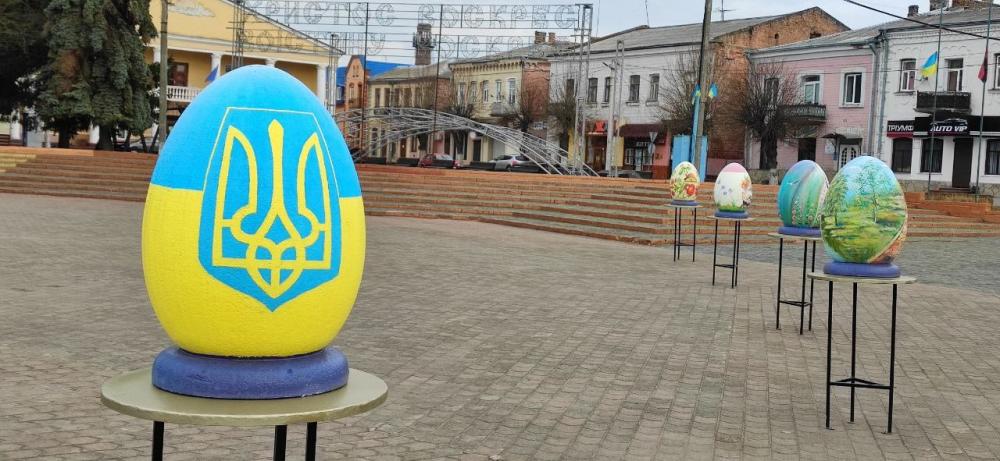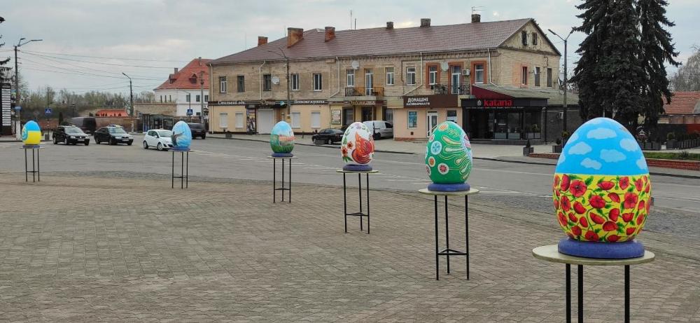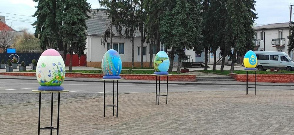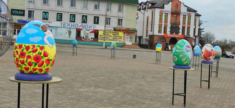 Великодні інсталяції, виготовлені минулого року нашими місцевими майстрами Андрієм та Денисом Мухами, Михайлом Костівим. Колоритні українські писанки неймовірної краси демонструють нашу багату культуру та історію, національні звичай та традиції. Нехай прийдешнє свято Воскресіння Господнього дарує нам впевненість у завтрашньому дні, живить душу та укріплює віру.