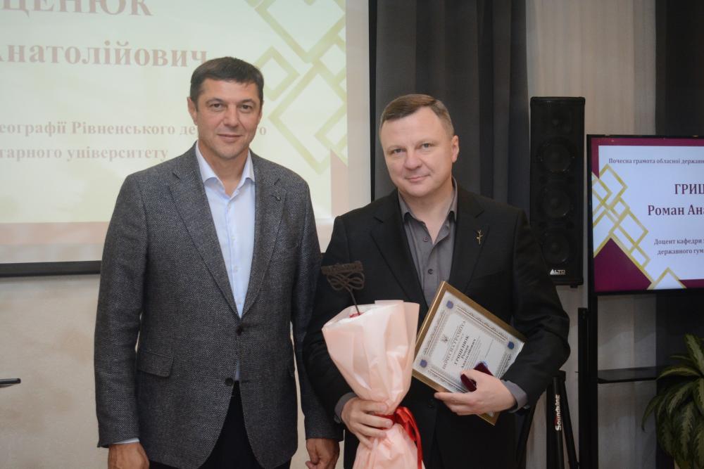 Привітав освітян начальник Рівненської ОВА Олександр Коваль, зазначивши, що кожен учитель, вихователь, науковець завжди дає більше, ніж просто знання й навички, — він формує характер, принциповість, цінності та націю.