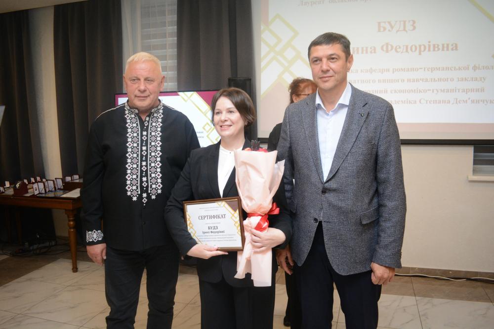 - у номінації «Вища освіта» завідувачка кафедри романо-германської філології Приватного вищого навчального закладу «Міжнародний економіко-гуманітарний університет імені академіка Степана Дем'янчука» Ірина Будз.