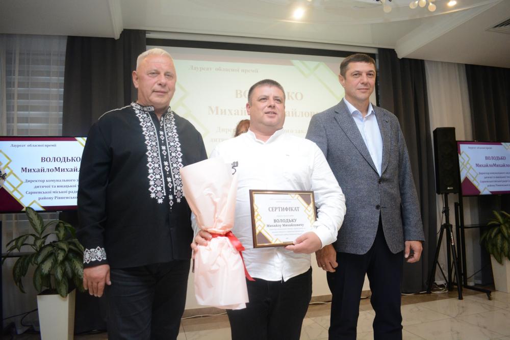 - у номінації «Позашкільна освіта» директор КЗ «Центр дитячої та юнацької творчості» Сарненської міської ради Михайло Володько, керівник «Народного художнього колективу» театральної лабораторії «ВідСутність» Рівненського міського Палацу дітей та молоді Юрій Паскар,