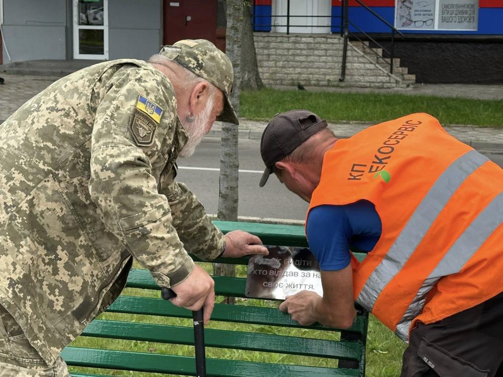 Перші таблички вже розміщені в парку Героїв Небесної Сотні та на центральній площі — поруч із банерами з іменами полеглих. Ініціатива належить ветеранській спільноті спільно з центром психосоціальної підтримки «Життя» — як підтримка родин загиблих побратимів і водночас спосіб щоденного нагадування про їхню жертовність.