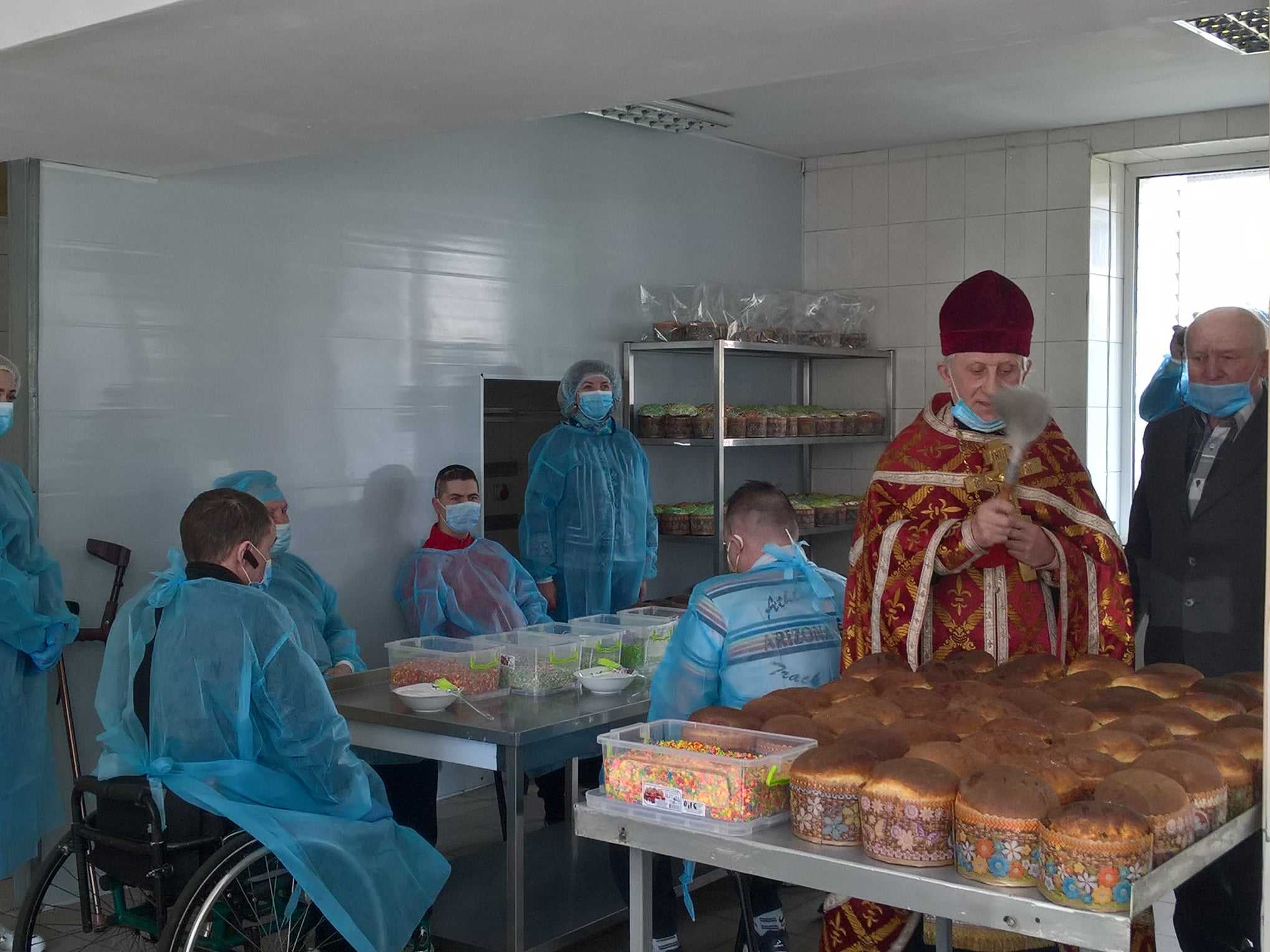 Після випікання великоднього хліба священник провів обряд освячення пасок. За кілька днів 1000 пасок та дитячі малюнки роз’їдуться по фронту, звіщаючи на війні, що «Христос Воскрес, воскресне Україна».