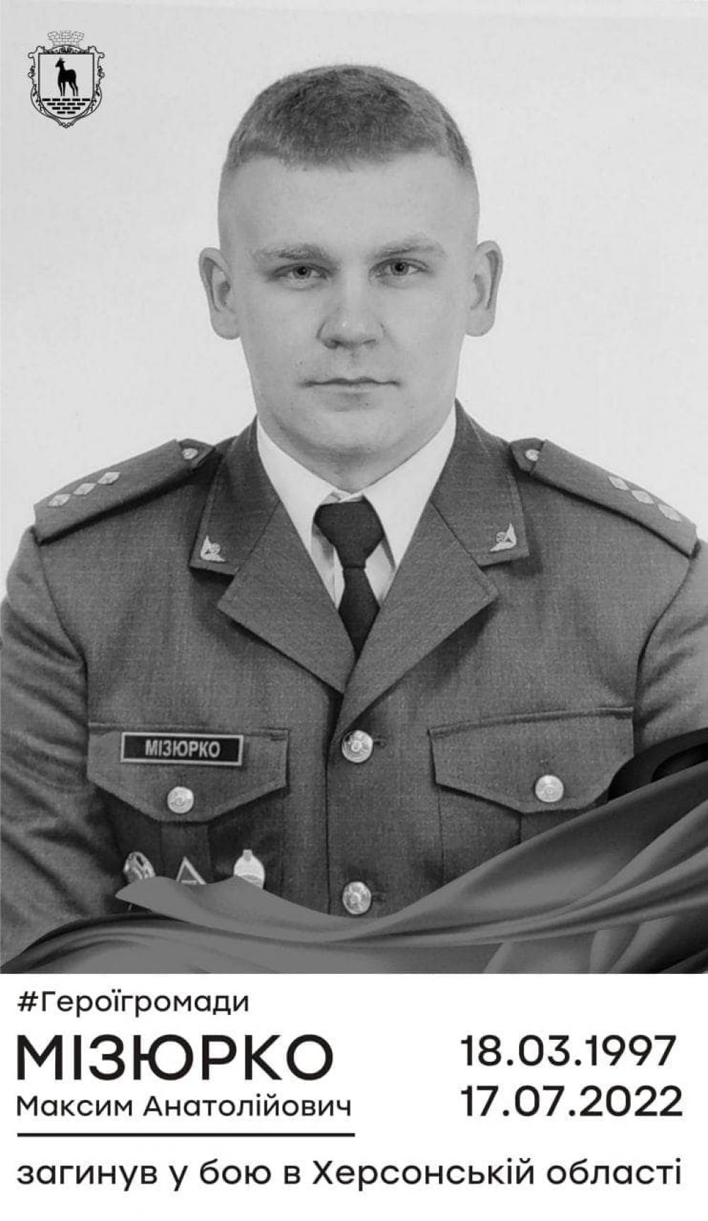 Сьогодні, 21 липня, оголошено День жалоби у Сарненській громаді, загинув захисник Максим Мізюрко, 1997 р.н., уродженець села Маслопуща.