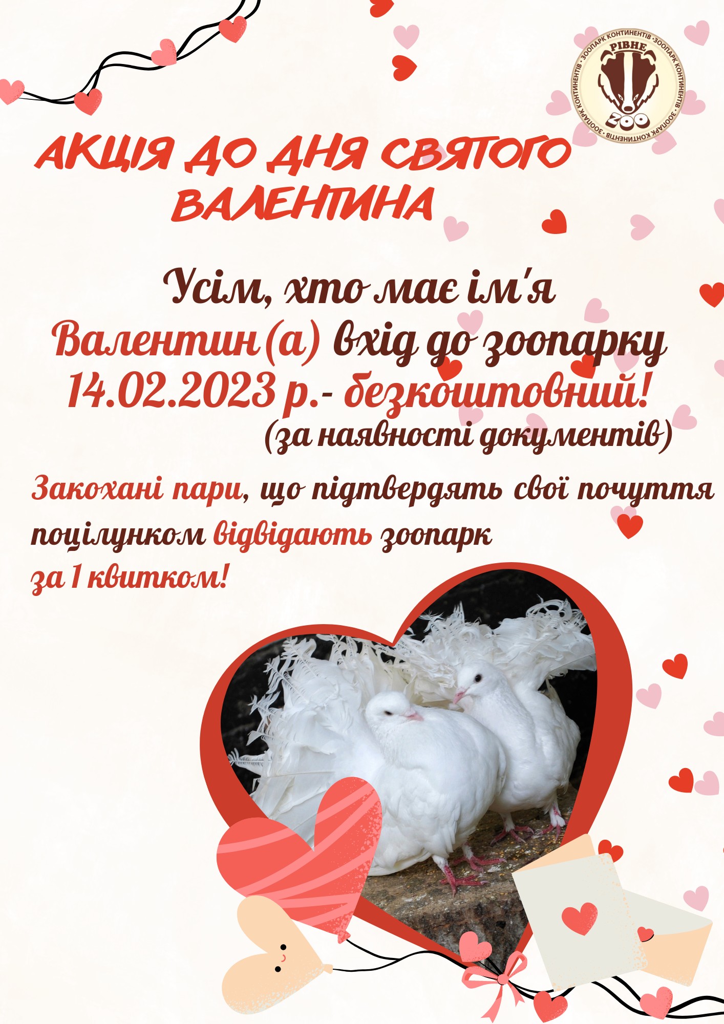 Зазначають, що усім, хто має ім'я Валентин(а), 14 лютого вхід до зоопарку буде безкошовним. Проте потрібно буде показати документи, що підтверджують особу.