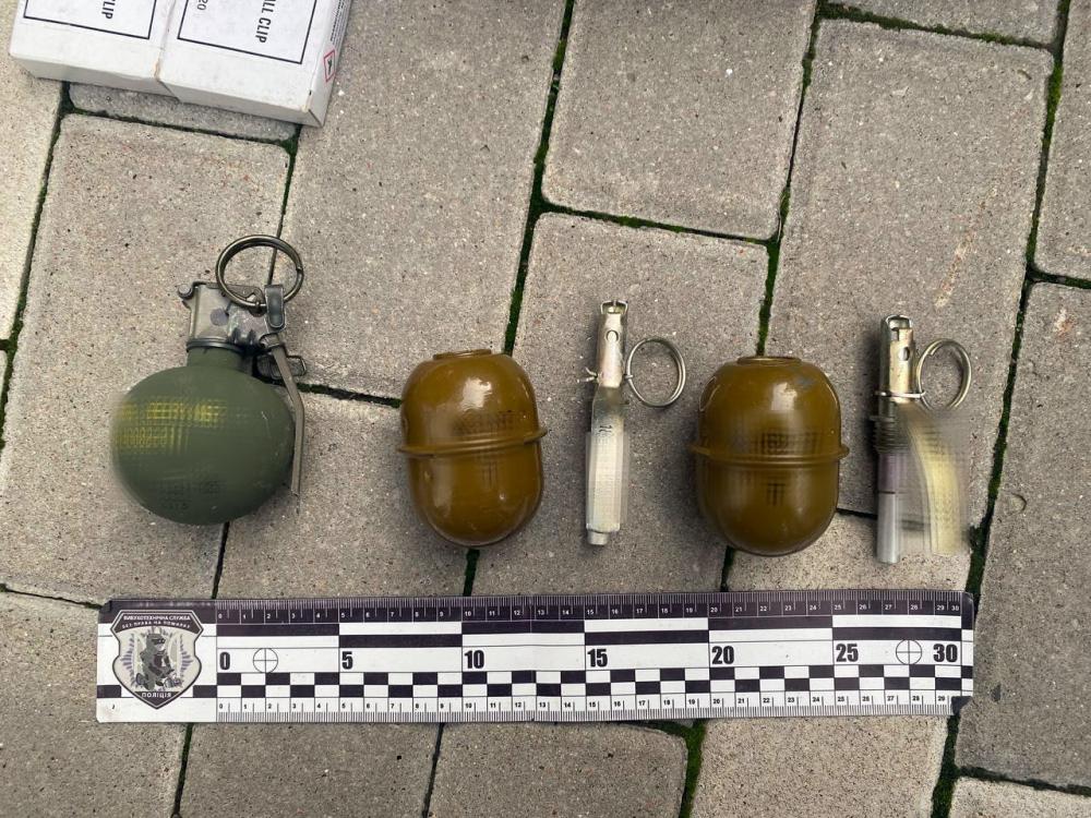 Під час слідчої дії поліцейські вилучили чотири гранати із запалами та маркуванням: Ф1, дві РГД та M67, які вибухотехніки привели у безпечний стан, а також 1133 патрони різного калібру, револьвер, карабін, два предмети зовні схожі на пістолет та ніж.