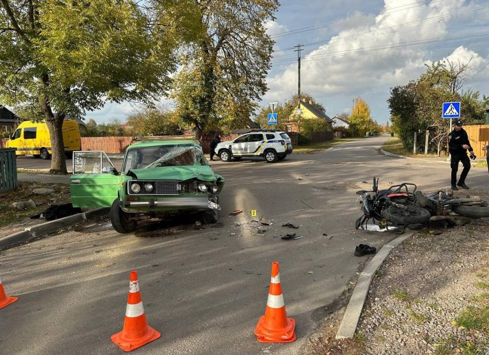 Слідчо-оперативна група на місці події встановила, що 23-річний житель села Озеро, керуючи мотоциклом, допустив зіткнення із автомобілем, 29-річний водій якого здійснював маневр повороту праворуч.