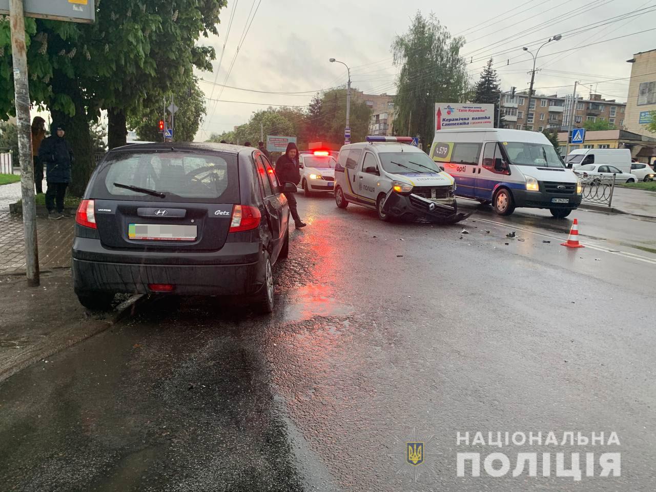 Наразі встановлено, що водій автомобіля «Hyundai Getz» — 52-річний рівнянин, не врахував дорожньої обстановки та допустив зіткнення із службовим автомобілем «Renault Dokker», який рухався на заборонений сигнал світлофору із завчасно увімкненими синьо-червоними проблисковими маячками. За кермом поліцейського авто перебував 31-річний сержант поліції.