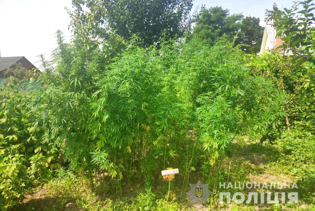 Під час огляду земельної ділянки оперативники та слідчі виявили та вилучили 320 рослин коноплі та пристрій для їх куріння.