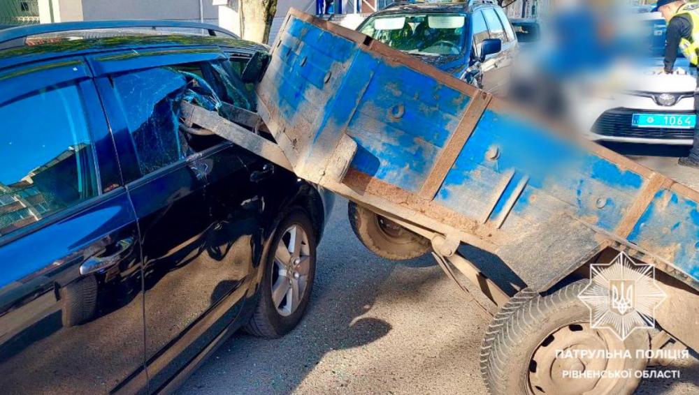 Поліцейські встановили, що 44-річний водій автомобіля не переконався у надійсності кріплення буксированого причепу, який під час руху влетів у припаркований поруч автомобіль.