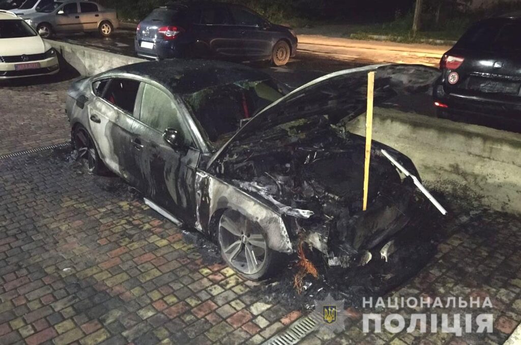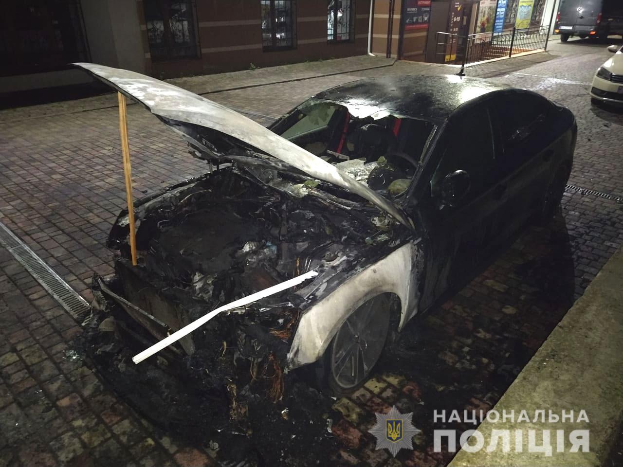 У ході огляду місця події, зокрема й обстеживши камери відеоспостереження, поліцейські встановили, що двоє невідомих осіб облили іномарку легкозаймистою речовиною та підпалили.