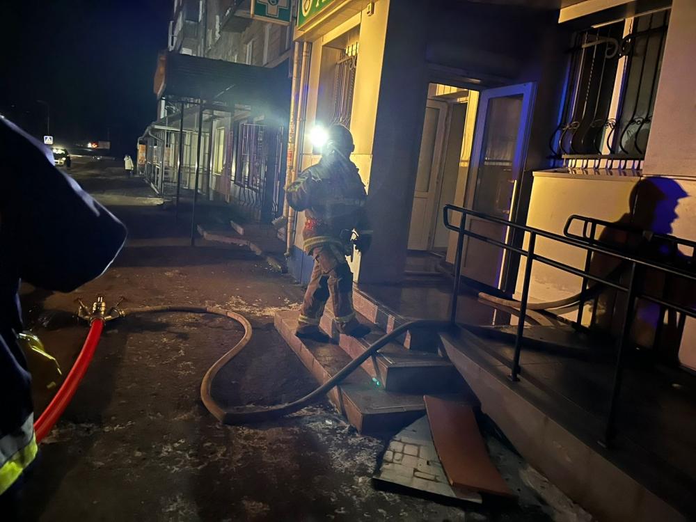 Прибувши за вказаною адресою рятувальники встановили, що осередок пожежі знаходиться в приміщенні аптеки на 1-му поверсі.