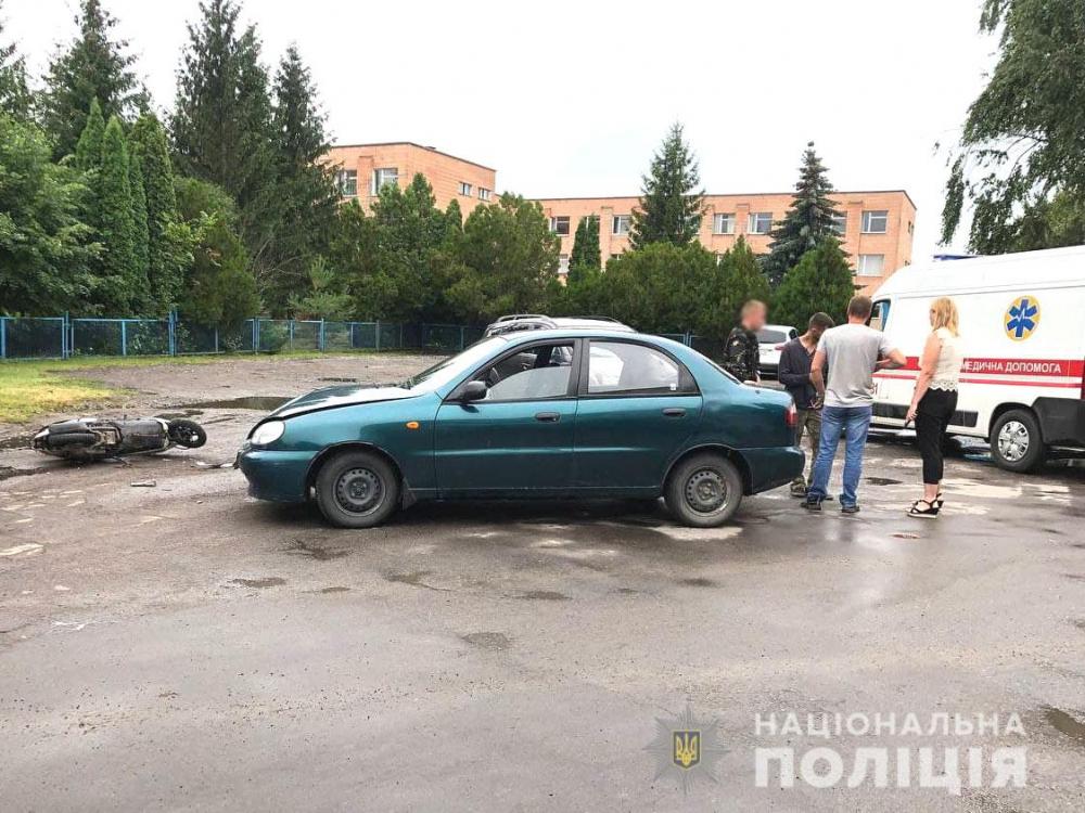 Вчора, 21 липня, близько 12.10 15-річний дубенчанин, керуючи скутером «Honda Dio», не вибрав безпечної швидкості руху на заокругленій дорзі допустив зіткнення з легковиком «Daewoo Lanos», яким керував 21-річний житель села Злинець.