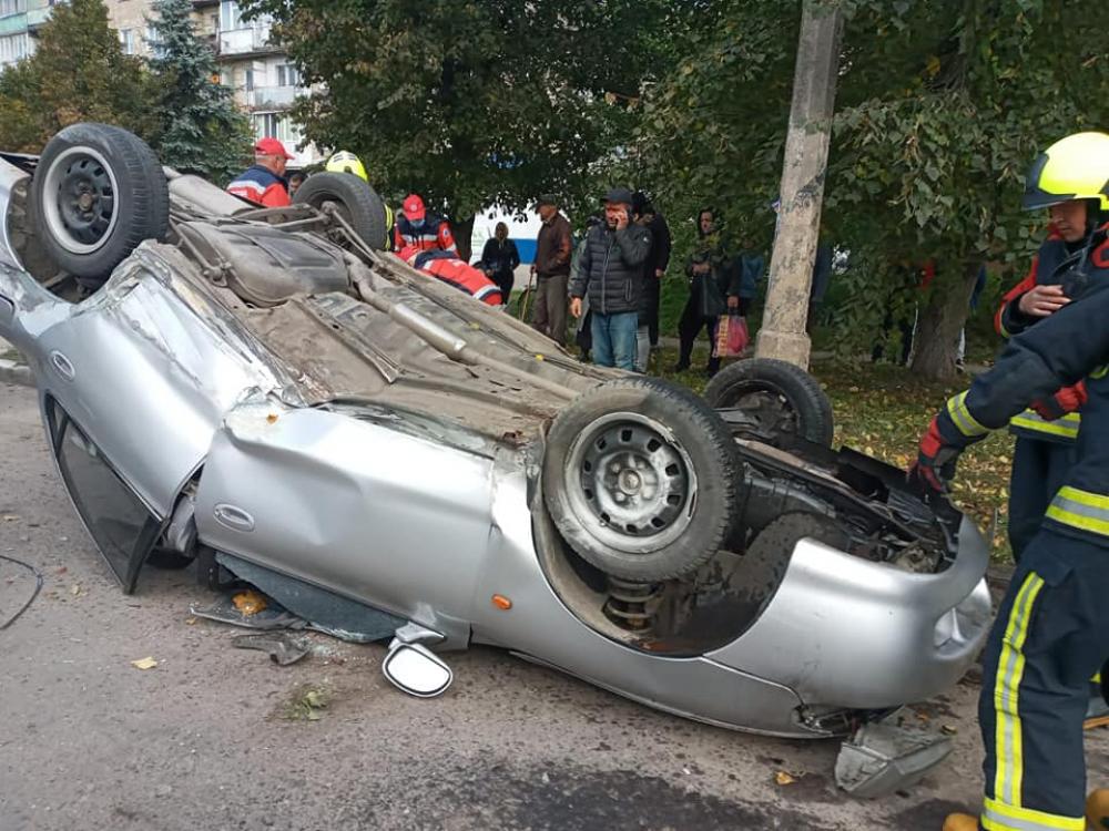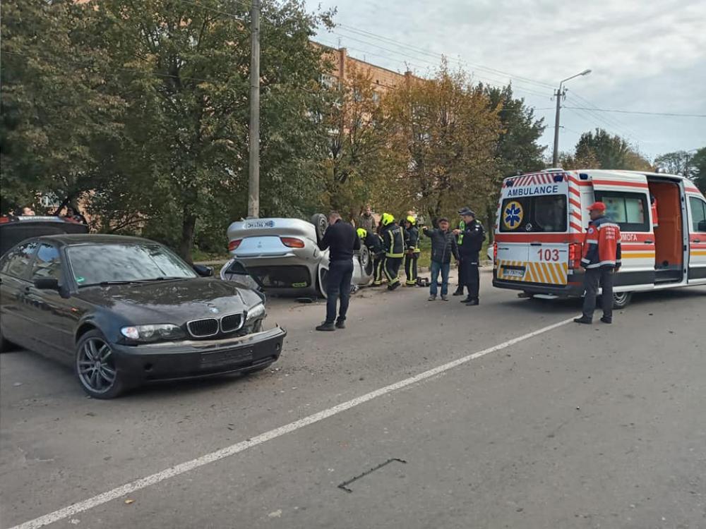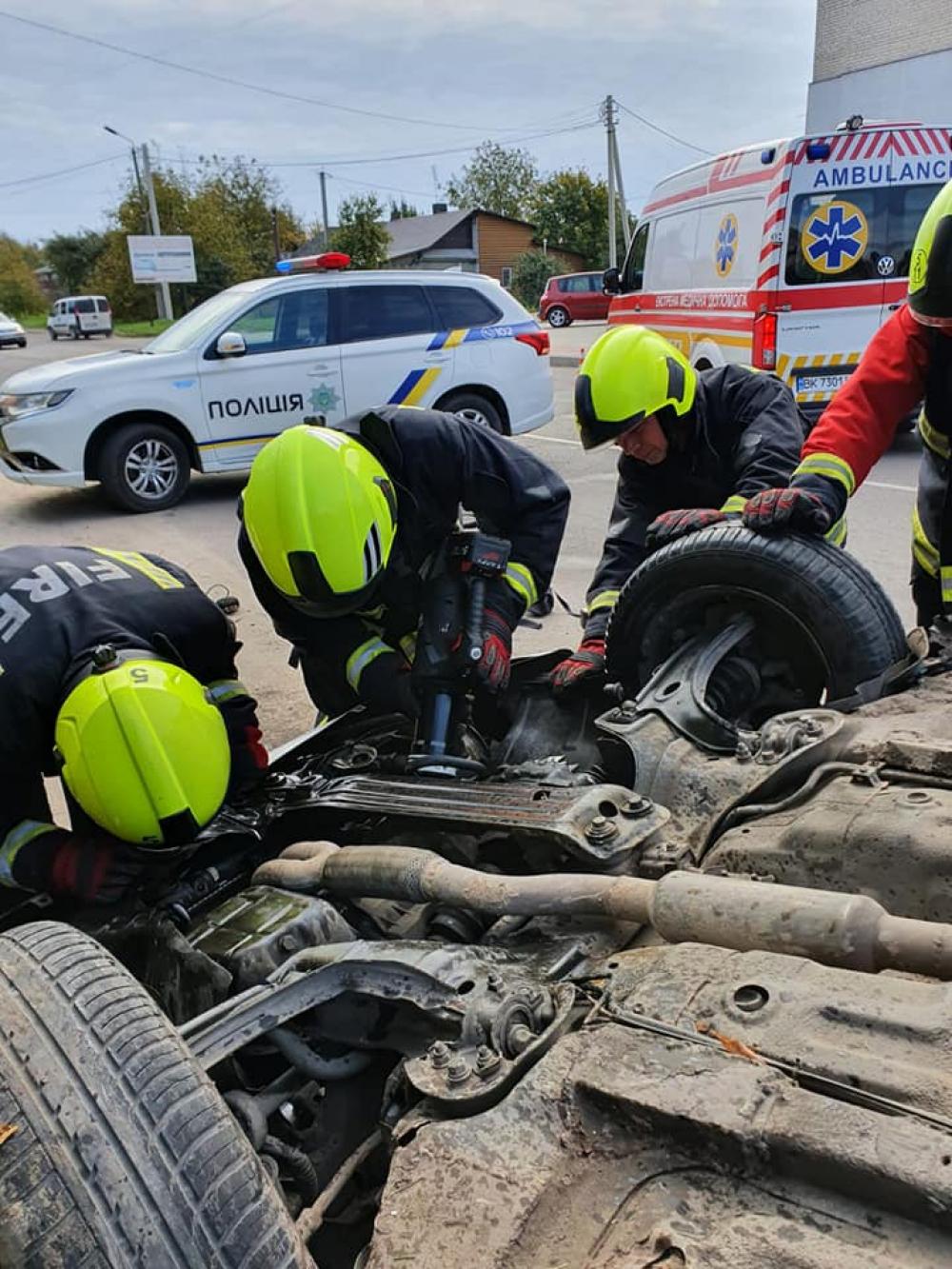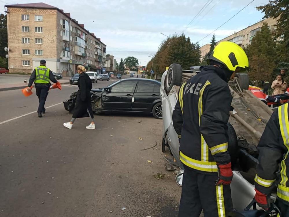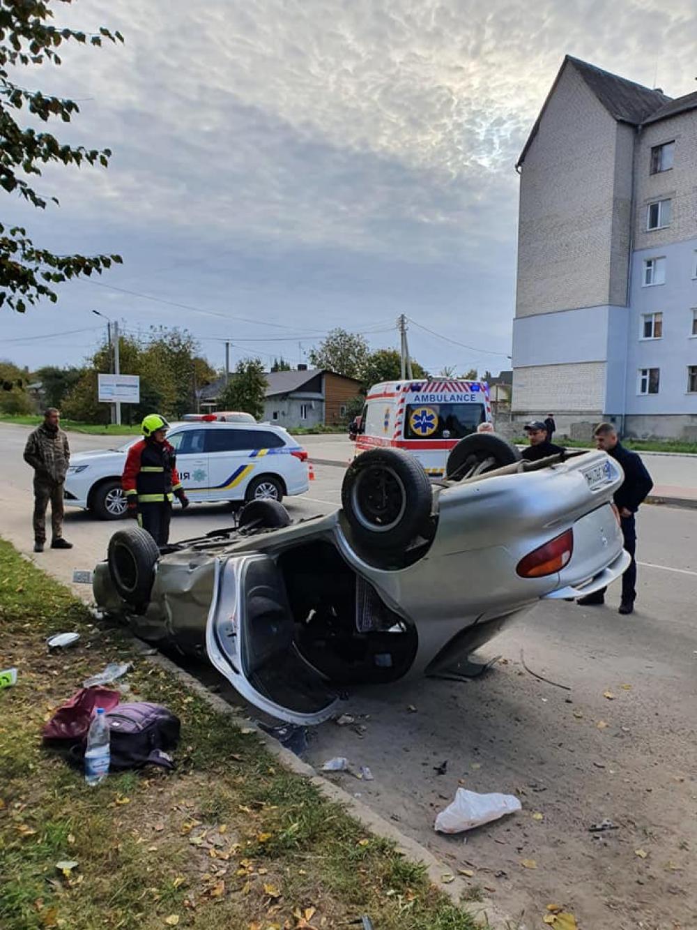 У місті Дубно сталася дорожньо-транспортна пригода, внаслідок якої одна автівка пошкоджена, а інша - перекинулася на дах.