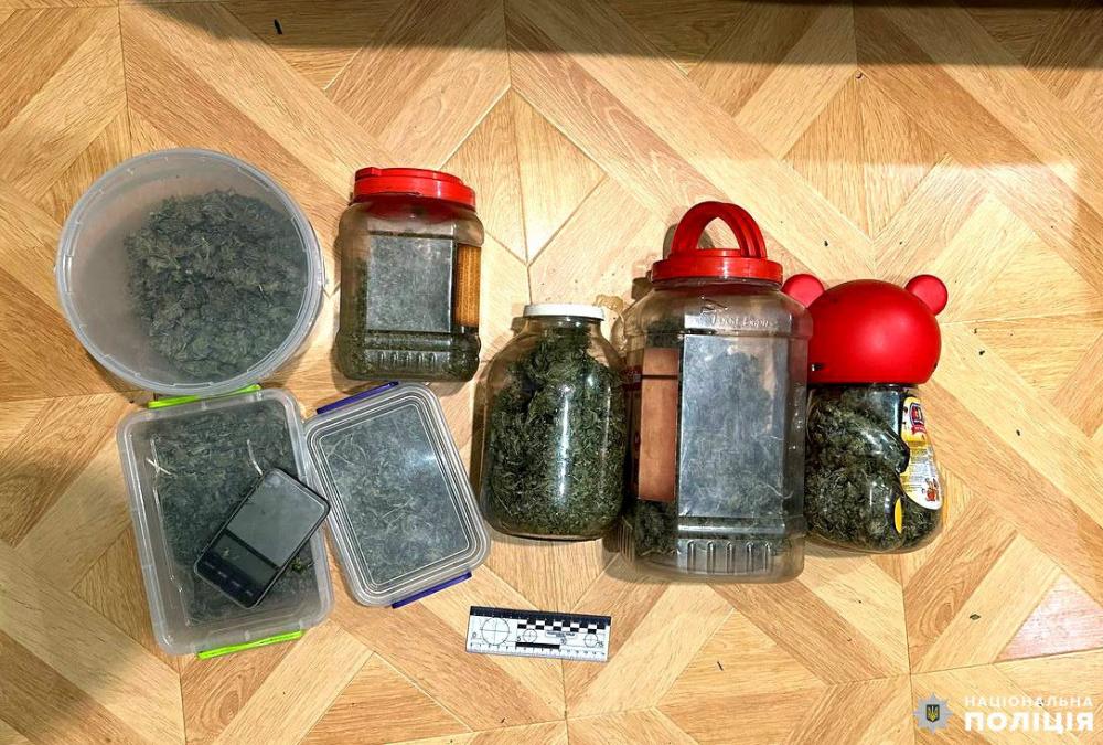 Під час проведення слідчої дії в підвальному приміщенні поліцейські вилучили чотири зіп-пакети з білою кристалічною речовиною та два — із висушеною подрібненою речовиною рослинного походження, схожою на канабіс, загальною масою близько 12 грамів.