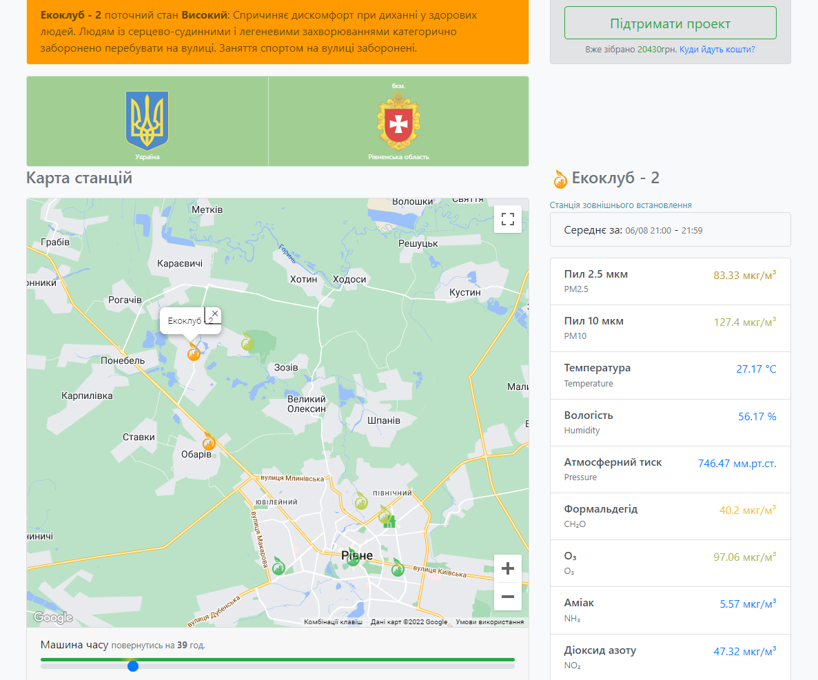 "Минулої суботи, 6 серпня, два пости громадського моніторингу "Ecocity", встановлені Еколубом у селах поблизу, зафіксували аномальне збільшення вмісту у повітрі двох забруднювальних речовин - дрібнодисперсного пилу та високолетких органічних сполук у перерахунку на формальдегід. Саме вони і спричинили "високий" рівень забруднення", - йдеться у повідомленні.
