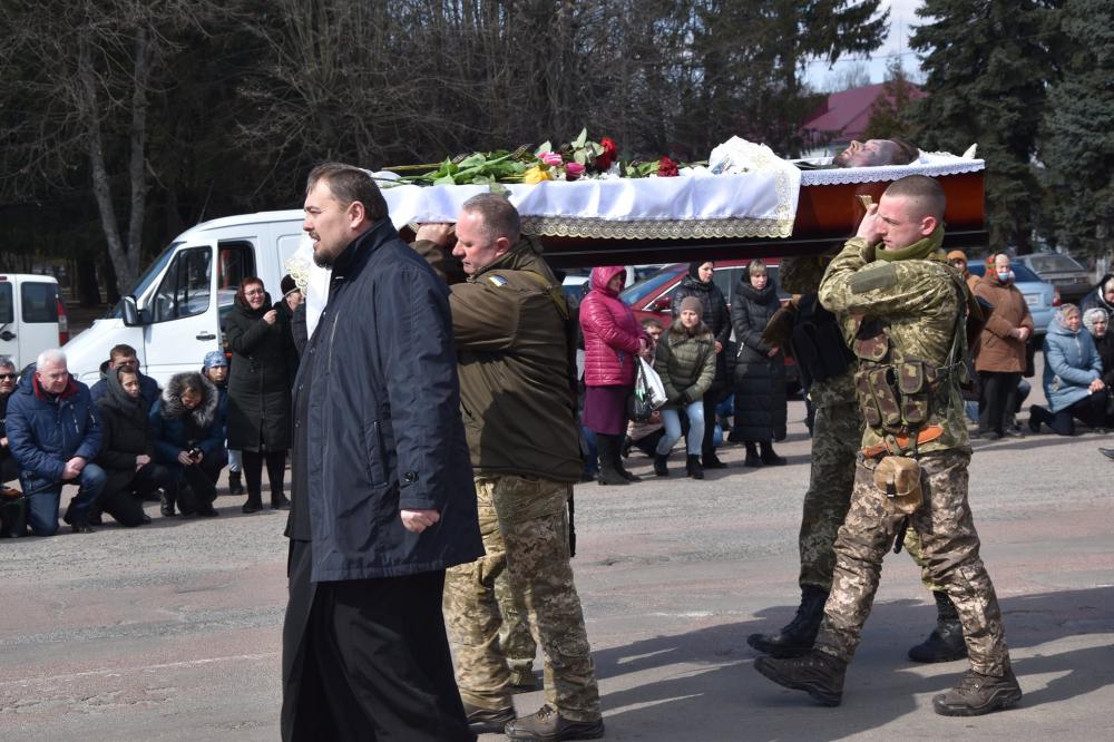 Труну з тілом загиблого Героя на руках несли бойові побратими та друзі. Плач згорьованої матері та дружини зливався з плачем жінок, які навколішках стояли понад шляхом поминальної колони. І хоча багато з них, не були навіть знайомими з цим хлопцем, але серце стискалося від жалю за цією молодою людиною, яка не пошкодувала свого життя за кожного з нас.