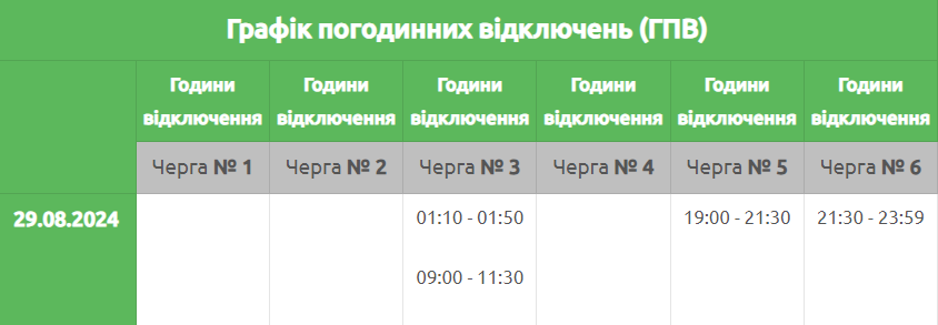 Зміни у графік відключення світла внесли на Рівненщині на сьогодні, 29 серпня.