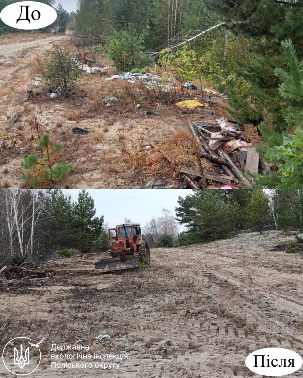 Інспекція скерувала лист до Філії «Поліський лісовий офіс» ДП «Ліси України» з вимогою ліквідувати виявлене несанкціоноване сміттєзвалище та із зауваженням щодо необхідності забезпечення виконання вимог статті 12 Закону України «Про управління відходами».