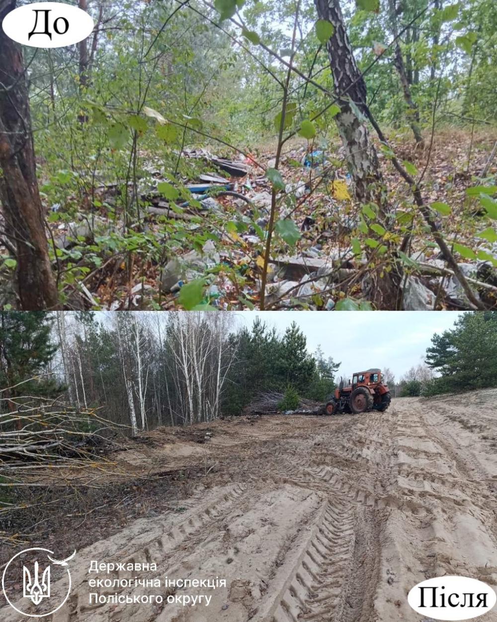 На сьогодні Інспекцію поінформовано, що Філією «Поліський лісовий офіс» ДП «Ліси України» стихійне сміттєзвалище ліквідовано, а територію приведено до належного санітарного стану.