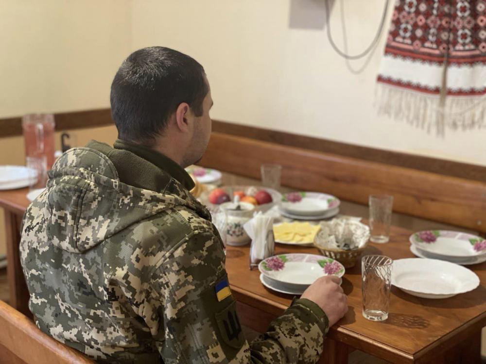 Нашим захисникам господині пропонують повноцінний обід – перше, друге, компот і фрукти. Тут можуть поїсти одночасно до 30 осіб.