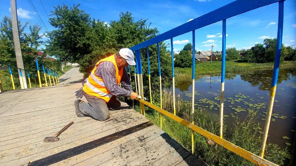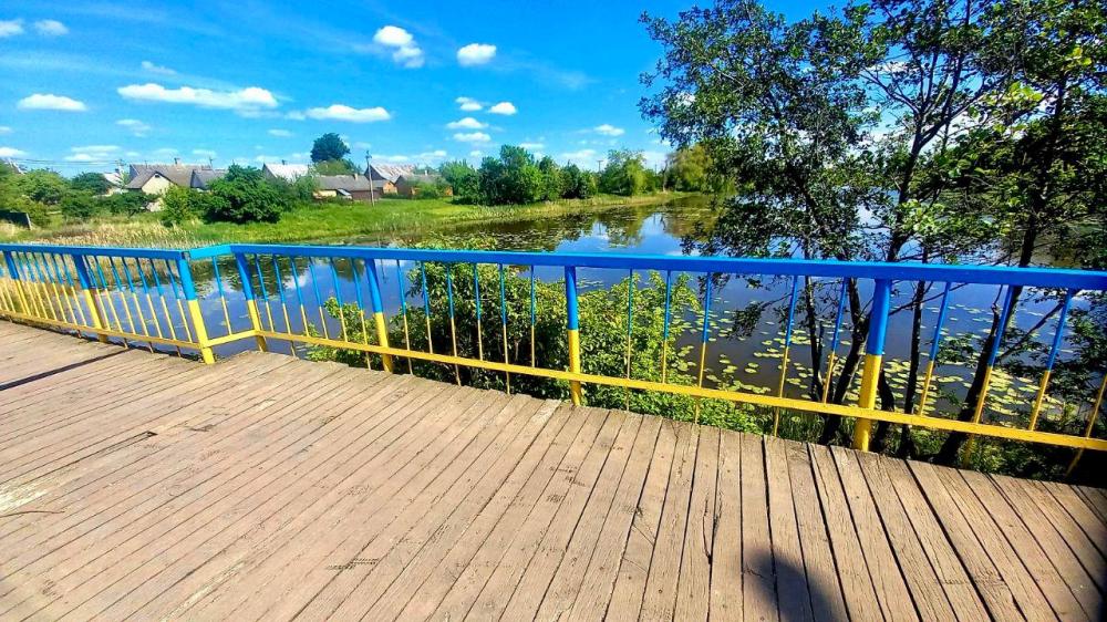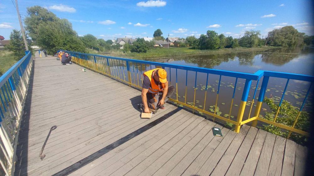 Фахівці КП КМР «Костопількомунсервіс» розпочали плановий ремонт пішохідного мосту через річку Замчисько (р-н Заріччя - вул. Набережна). Конструкцію пофарбують в синій та жовтий кольори.