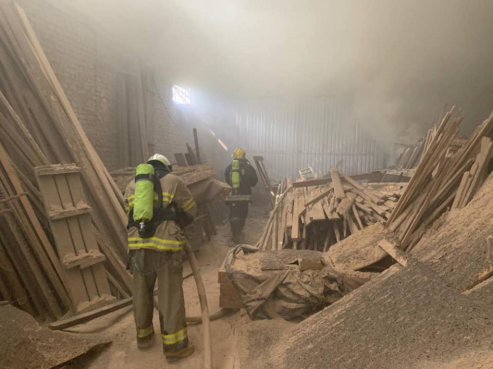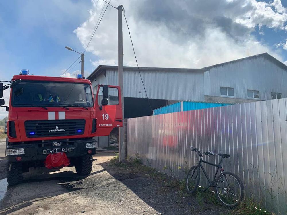 Як повідомили у ГУ ДСНС у Рівненській області, всередині складської будівлі загорілись тирса та автомобільні шини на площі 25 м². Через палаючі шини утворилося сильне задимлення.