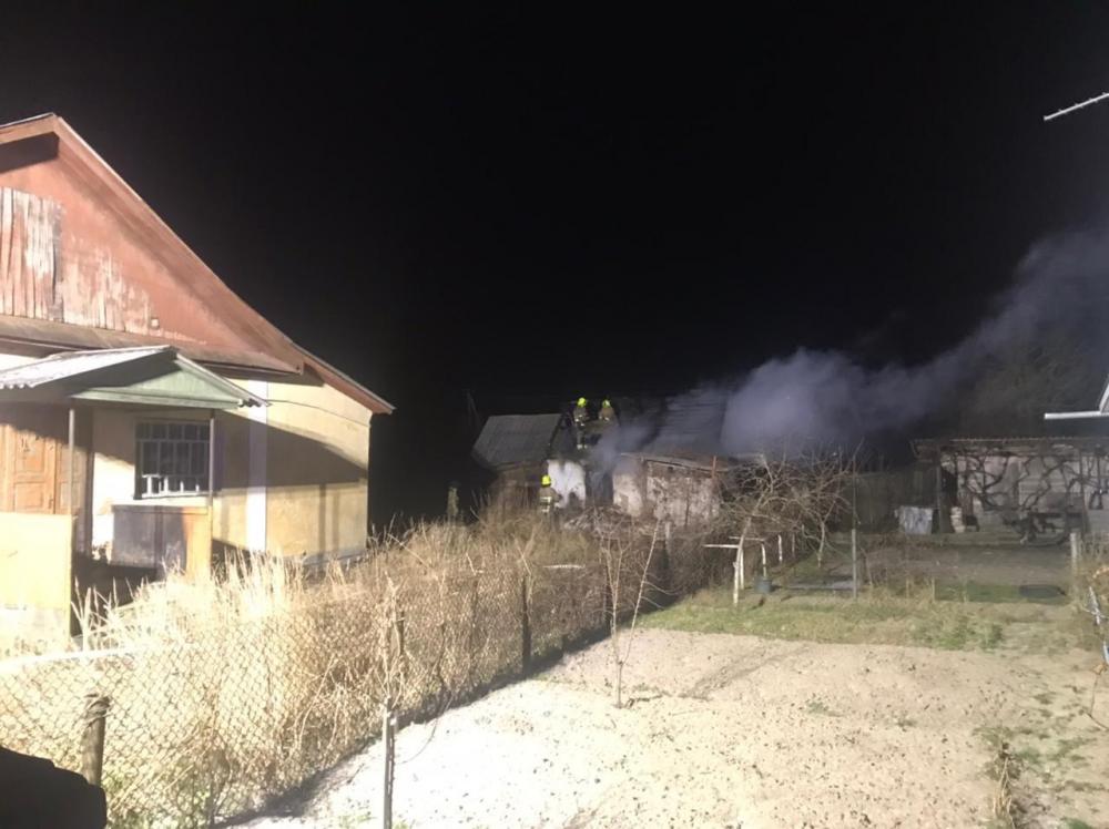 Внаслідок пожежі вогнем знищено господарчу будівлю та 1 тону сіна. Причина та збитки встановлюються.