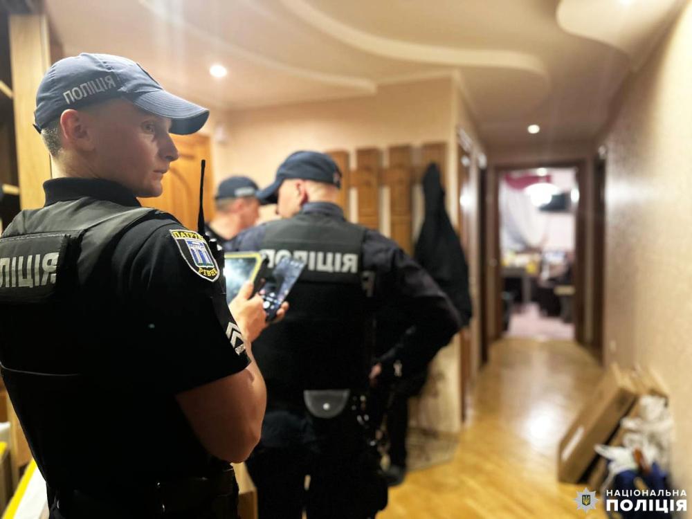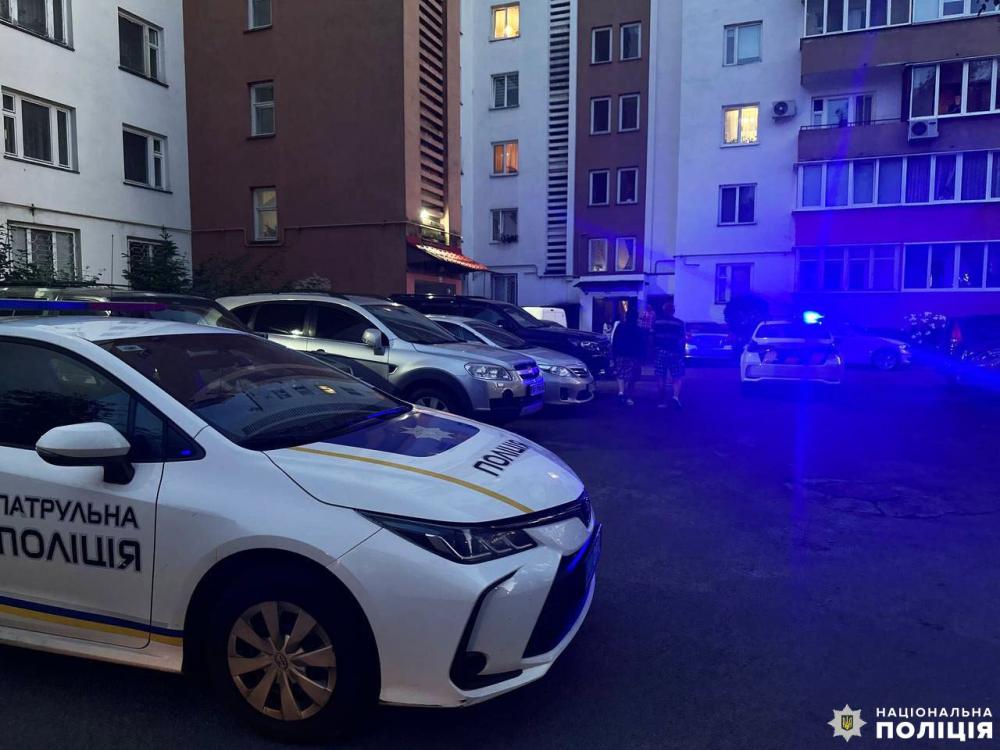 Заявник та особа, яка перебувала у квартирі із потерпілою, перебувають на місці події. З ними спілкуються правоохоронці.