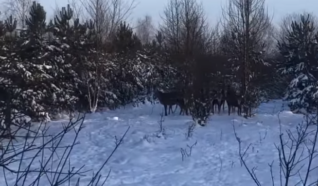 Так благородні олені у Зарічненському районі чекали на обід, що приготували для них тамтешні мисливці (див. відео, - прим.ред):
