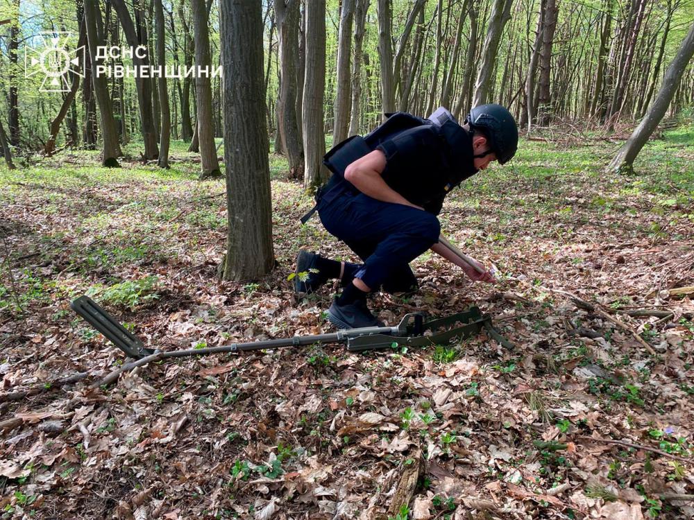 У лісовому масиві поблизу села Вишневе Дубенського району місцеві жителі натрапили на підозрілий металевий предмет, схожий на вибухонебезпечний.