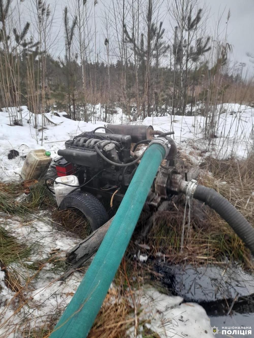 Для документування кримінального правопорушення на місце події викликали слідчо-оперативну групу, яка вилучила майже 300 грамів каміння бурштину-сирцю, мотопомпу кустарного виробництва, чотири пожежні рукави та інше обладнання.