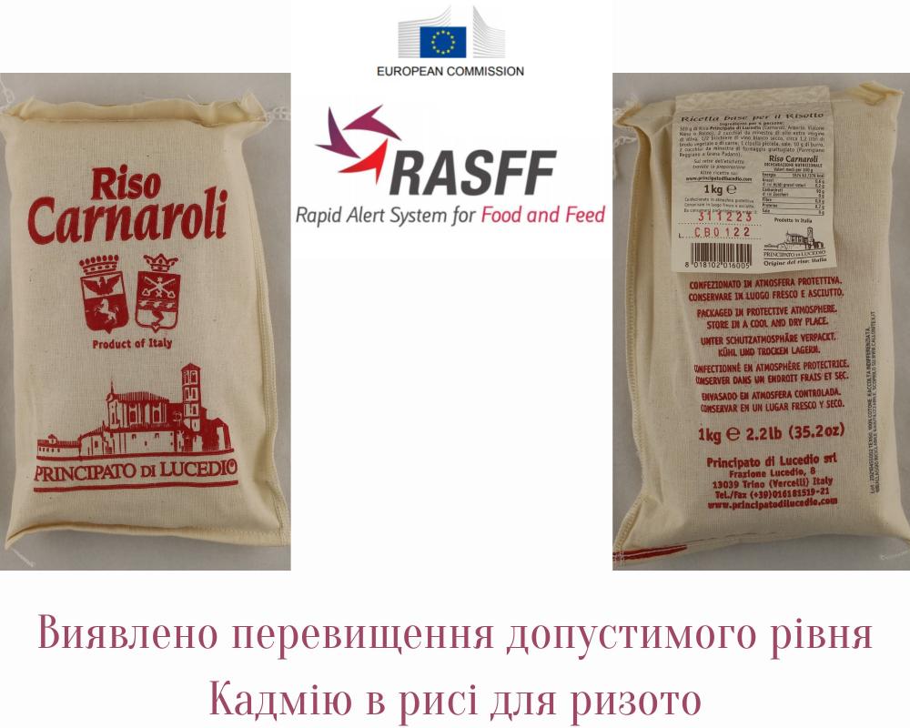 У рисі для ризото, який експортували з Італії (виробник: Sapori Nostrani di Giorgio Turco, Italy; трейдер: WB Polska Sp. z o.o., Poland), виявили перевищенння допустимого рівня Кадмію.