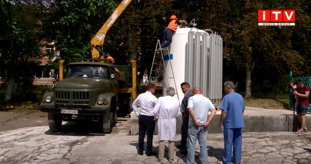 Отримала міська лікарня цей резервуар завдяки гранту від Всесвітньої організації охорони здоров'я. За словами головного лікаря Євгена Кучерука, вартує така бочка разом з установкою майже 2 з половиною мільйона гривень. Втім, додає, у складні моменти ця установка рятуватиме не лише інфекційне відділення.