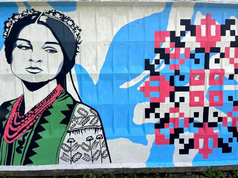 Українські мотиви та різнобарв'я кольорів у стінописі додають позитиву і радості всім, хто проходить або проїжджає повз муралу вулицею Поліщука.