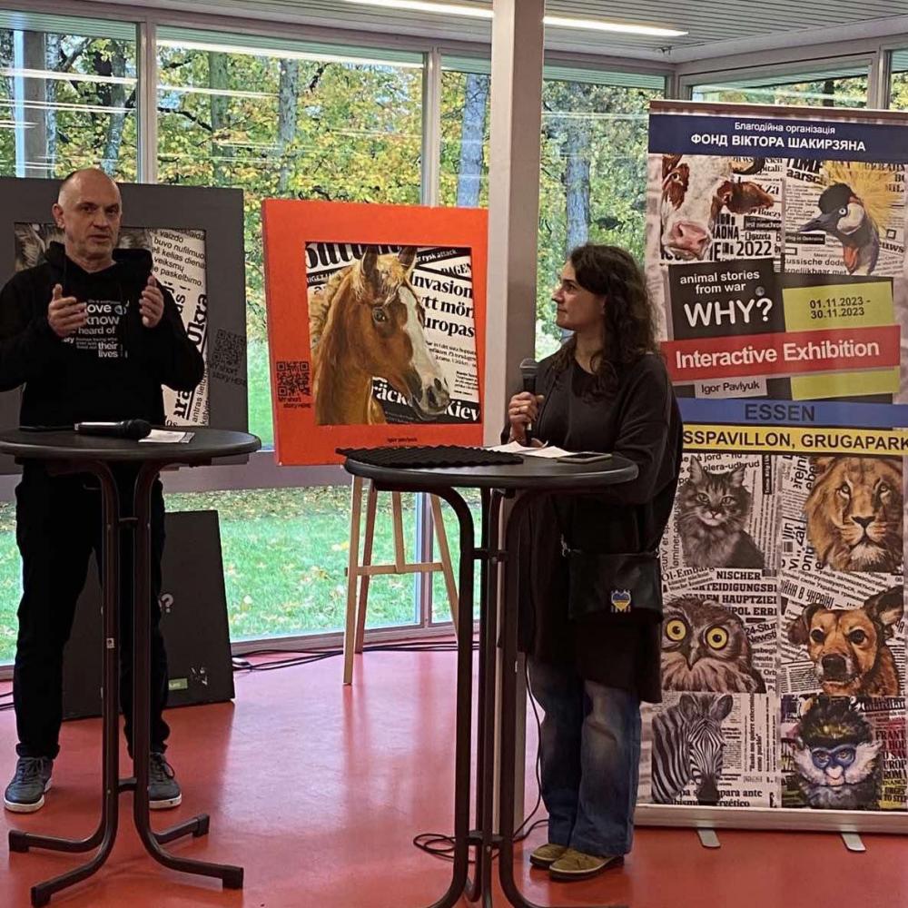 У німецькому місті Ессен відкрили інтерактивну виставку «ЧОМУ? Історії тварин з війни», авторами якої є низка креативних рівнян на чолі з відомим дизайнером Ігорем Павлюком та керівником Рівненського зоопарку Олегом Павлюком.